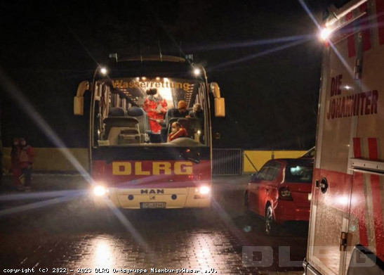 Die Einsatzgruppe der DLRG Ortsgruppe Nienburg hat am 29.12.2023 im Auftrag der Stadt Nienburg und der Wasserschutzpolizei die Evakuierung des Porta-Camps auf dem Gelände des ehemaligen „Engländerhafens“ an der Luise-Wyneken-Straße durchgeführt. Die beiden Nienburger Bootstrupps und das Hochwasserboot der Ortsgruppe Uchte, jeweils ergänzt um zwei Strömungsretter, pendelten zwischen der Festwiese und dem gut 800 Meter entfernten Porta-Camp. Auf diese Weise konnten 12 Personen, darunter Kleinkinder und Babys sowie zwei große Hunde aus der vollständig vom Wasser eingeschlossene Anlage in Sicherheit gebracht werden. Höhenunterschiede auf den überfluteten Flächen, Hindernisse unter Wasser und die erschreckend starken und zum Teil unvorhersehbaren Strömungen addierten sich dabei zu einem beso ... Mehr erfahren