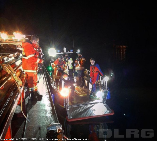 Keine 16 Stunden war das neue Jahr alt, da wurden die Wasserretter der DLRG Ortsgruppe Nienburg zu einem Wasserrettungseinsatz an den Schleusenkanal zwischen Stolzenau und Schlüsselburg alarmiert. Eine vermisste Person wurde im Nahbereich der Schleuse vermutet. In der einsetzenden Dunkelheit wurde der Kanal ober- und unterhalb der Schleuse von je zwei DLRG- und zwei Feuerwehrbooten per Sonar abgesucht. Zwei Bereiche oberhalb der Schleuse wurden außerdem von Tauchern im tieferen und einer Suchkette im flacheren Wasser tastend abgesucht. Die Suche musste nach diesen Maßnahmen jedoch ergebnislos eingestellt werden. Gemeinsam mit dem Wasserrettungszug des DLRG Bezirks waren aus Nienburg 12 Einsatzkräfte mit vier Einsatzfahrzeugen und zwei Booten am Einsatz beteiligt. ... Mehr erfahren