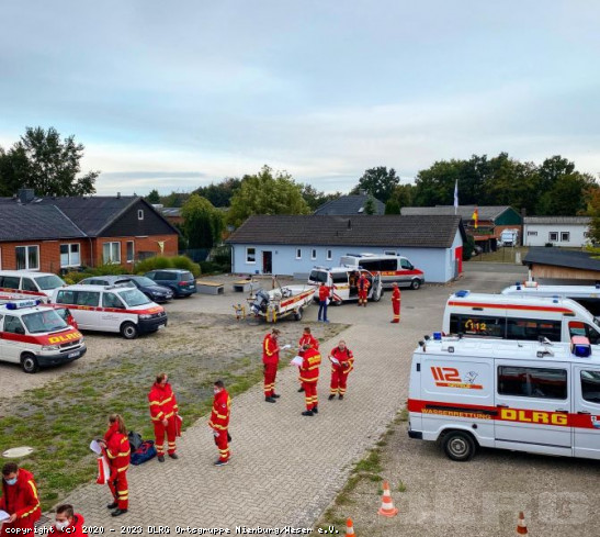 Um die 100 verletzte und betroffene Personen aus drei verunglückten Linienbussen, so sah das Übungsszenario aus, das die Polizei und die Rettungskräfte aus dem Landkreis Nienburg am Samstag zu bewältigen hatten. Bei so einer großen Anzahl an Betroffenen sind neben dem Regelrettungsdienst auch Feuerwehren und alle ehrenamtlichen Einsatzkräfte der Hilfsorganisationen ASB, DRK, Johanniter und der DLRG aus dem Landkreis eingebunden. Elf unserer Einsatz Einsatzkräfte waren mit vier Fahrzeugen am DLRG-Kontingent beteiligt, das mit neun Fahrzeugen und 32 Personen Aufgaben in der Betreuung von unverletzten Betroffenen und leicht verletzten am Unglücksort und in einer einzurichtenden Betruungsstelle übernommen hat. Besonders freuen wir uns, dass der aktuell bei uns stattfindende „San-B“-Le ... Mehr erfahren