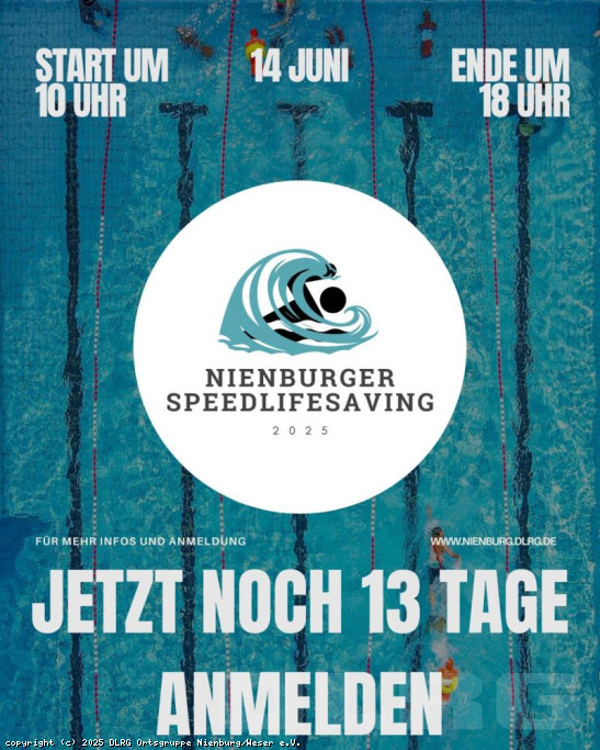 Vier Wochen bis zum Speedlifesaving - zwei Wochen bis zum Meldeschluss Jetzt als schnell online anmelden für die Teilnahme am coolsten Freundschaftswettkampf der Saison in einem der schönsten Freibäder Niedersachsens: Link zur Anmeldung Wir freuen uns auf euch! ... Mehr erfahren
