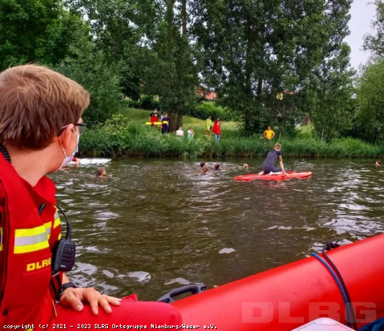 Schwimmen in Flüssen wie der Weser ist zwar grundsätzlich nicht verboten, bei einer so viel befahrenen Bundesschifffahrtsstraße rät die DLRG jedoch klar davon ab! Aber was passiert, wenn ein Ruderboot kentert, und das Schwimmen im strömenden Wasser damit unausweichlich ist? Diese Frage haben sich die jungen Sportler von der Ruderriege der ASS (RRASS) in Nienburg gestellt. Im Rahmen eines Sicherheitstages sollten sie die Möglichkeit haben, unter Aufsicht diese Erfahrungen zu machen. Daher kamen wir der Anfrage der Ruderer, diesen Ausbildungstag am Montag abzusichern, gerne nach. Unter recht günstigen Strömungs- und Wetterverhältnissen war es für viele junge Ruderer ein eindrucksvolles Erlebnis, wie anstrengend und ermüdend die wenigen im Wasser zurückgelegten Meter waren. Daher auc ... Mehr erfahren