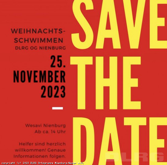 Es ist wieder soweit: Unsere Vereinsmeisterschaften finden am 25. November im Wesavi statt! Los geht's beim Weihnachtsschwimmen (so heißen bei uns die Vereinsmeisterschaften) mit dem Einlass um 13:30 Uhr, ins Wasser geht's ab 14:00 Uhr. Teilnehmen können alle Vereinsmitglieder und Eltern. Die Altersklassen sind ab sechs Jahren im zwei-Jahres-Abstand gestaffelt. Eltern schwimmen miteinander in der Klasse "Eltern unter sich". Anmelden könnt ihr euch noch bis zum 21.11.2023 hier (Link). Eine Woche später, am 02.12.2023 findet die Siegerehrung auf dem Weihnachtsmarkt der DLRG-Jugend Nienburg bei uns in der Rudolf-Diesel-Straße statt. Zur Anmeldung geht es hier (Link). Wir freuen uns auf zwei erfolgreiche Veranstaltungen zum Ende dieses DLRG-Jahres mit euch in Nienburg! ... Mehr erfahren